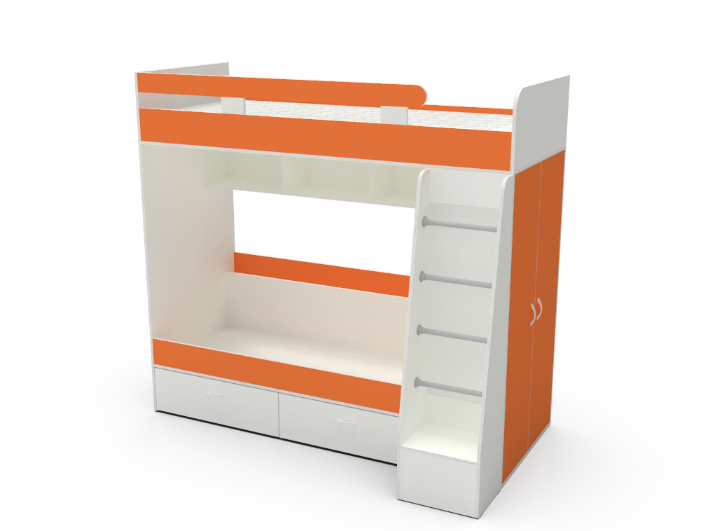 Двухъярусная кровать Юниор 6, Белый (Оранжевый)