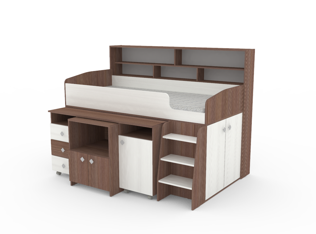 Кровать чердак Малыш 5 - это многофункциональный спальный комплекс, включающий детскую кровать Малыш на «чердаке», выдвижной стол, открытые и закрытые полки. Мебель изготовлена из ламинированного ДСП, с использованием кромки АБС, что позволяет продлить срок службы изделию и сохранить внешний вид. На цветных фасадах: цвет кромки - бежевый. Кровать-чердак «Малыш 5». Размер кровати (Д*Ш*В): 1864*1272*1400 мм. Размер стола (Д*Ш*В): 1390*630*720 мм. Спальное место: 1800*800 мм. Материал ЛДСП 16 мм. Количество упаковок: 5 Вес: 240 кг. Объем: 0,4 м3. В комплектацию кровати-чердака «Малыш 5» входит: - каркас кровати; - полность выкатной письменный стол с тумбой, выкатными ящиками и полками; - задняя стенка с полками для хранения над спальным местом; - лестница; - шкафчик под спальным местом, с открытой и закрытой полкой. Кровать универсальная. Сборка осуществляется на обе стороны.позволяет продлить срок службы изделию и сохранить внешний вид.Матрас для кровати вы можете приобрести отдельно в разделе детских матрасов. Так же мы предлагаем ниже в разделе Аксессуары наиболее оптимальные варианты для данной кровати.