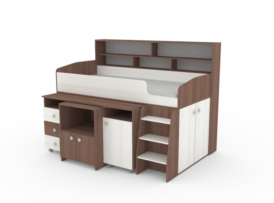 Кровать чердак Малыш 5, Бодего Темный (Белое дерево)