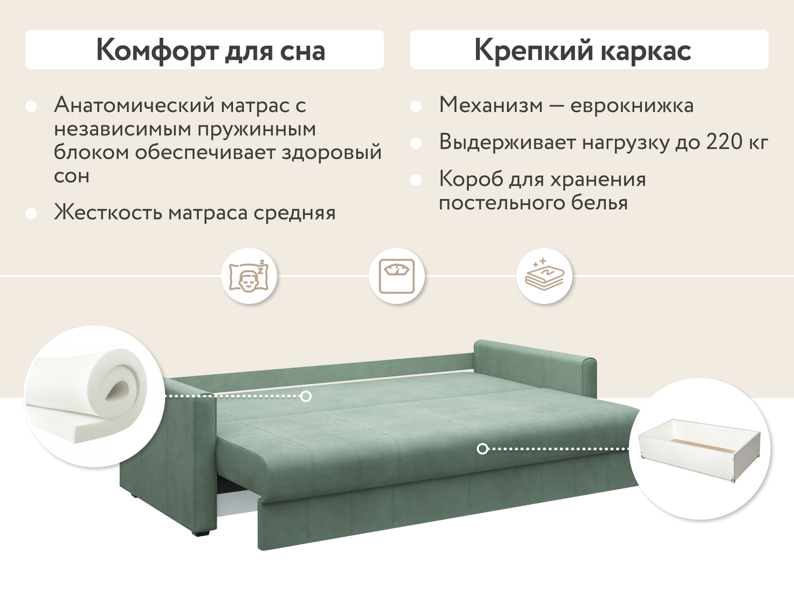 Отзывы о Столплит Диван-кровать Римини, велюр, еврокнижка, 150х200 Мятный