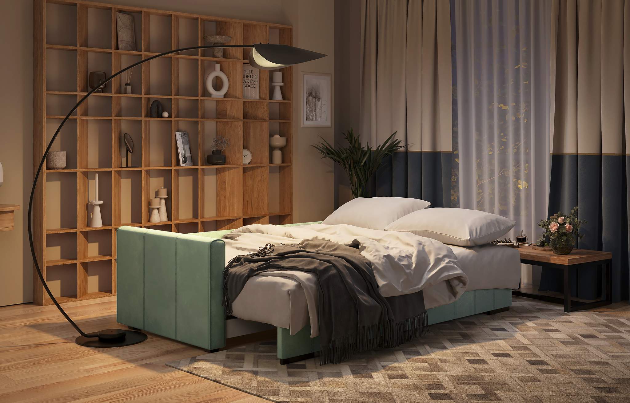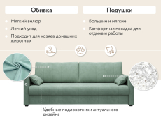 Диван-кровать Римини, велюр, еврокнижка, 150х200 (Мятный)