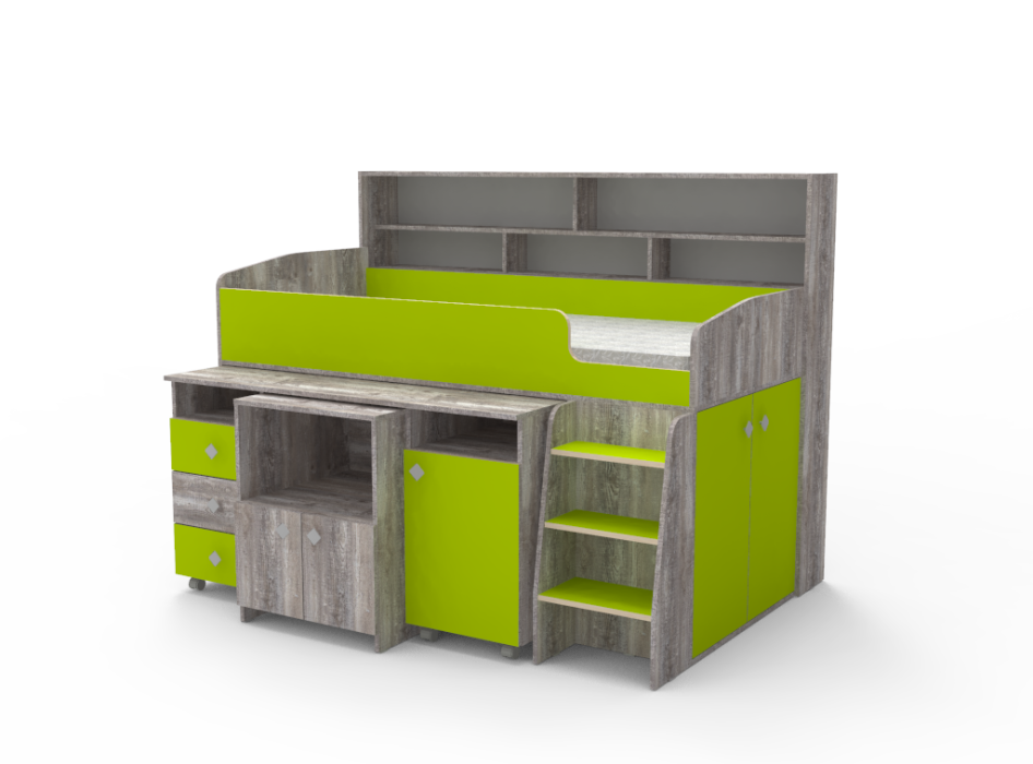 Кровать чердак Малыш 5, Бетон (Лайм)