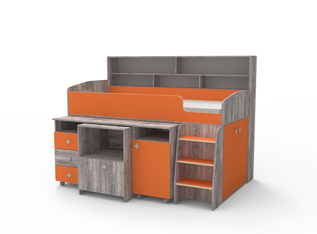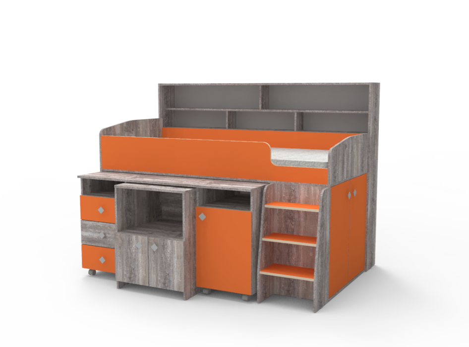Кровать чердак Малыш 5, Бетон (Оранжевый)