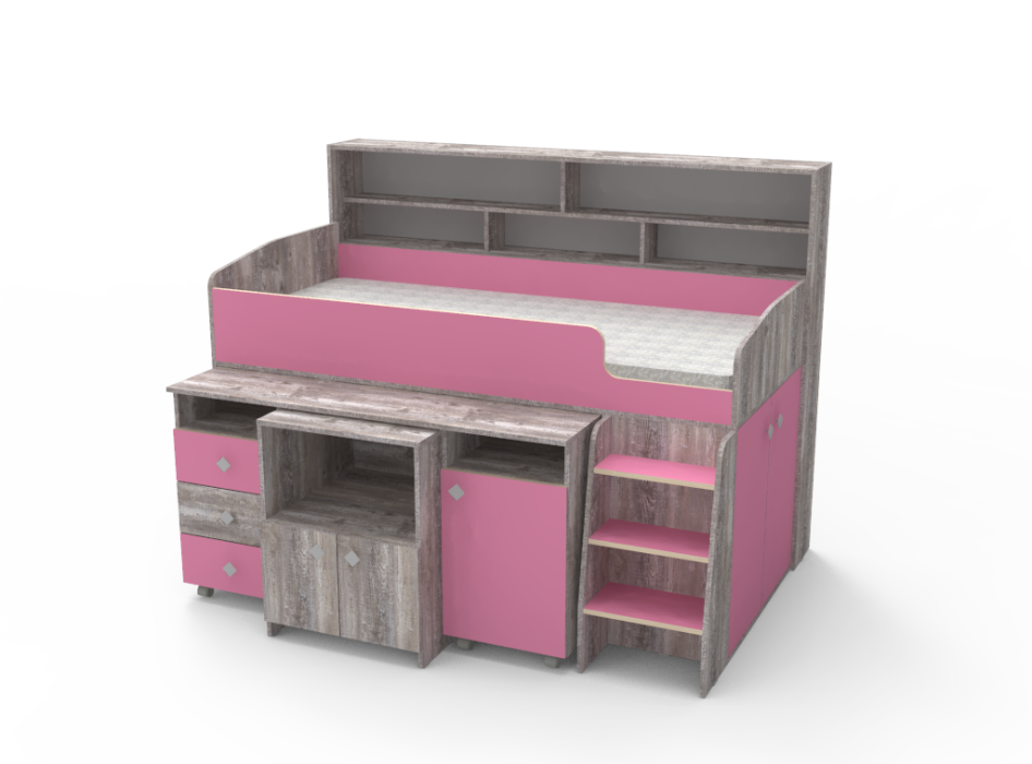 Кровать чердак Малыш 5, Бетон (Розовый)