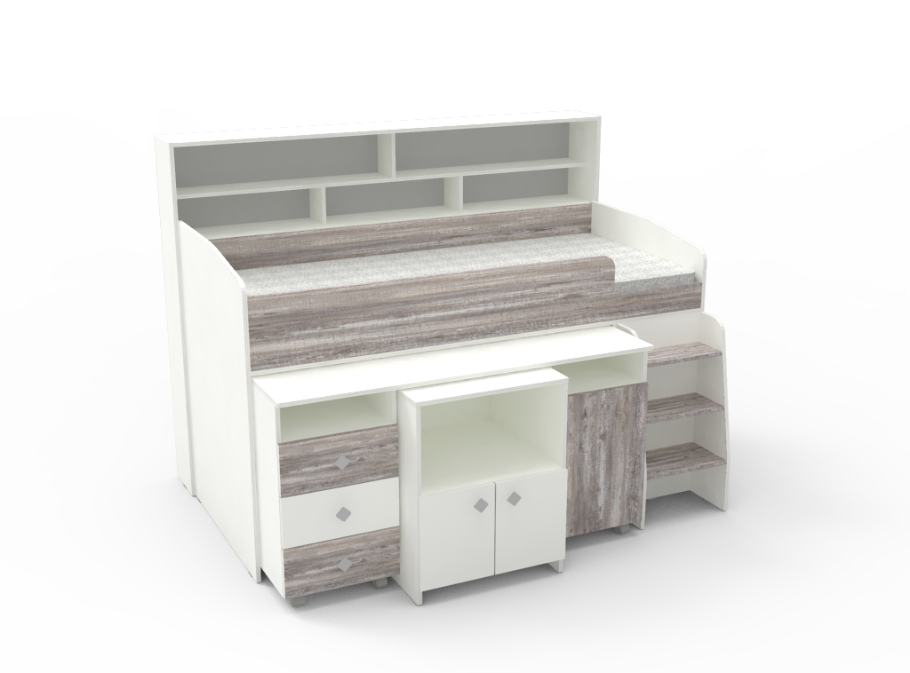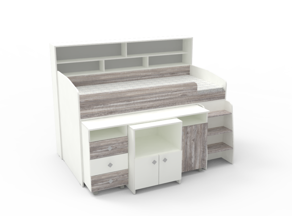 Кровать чердак Малыш 5, Белый (Бетон серый)