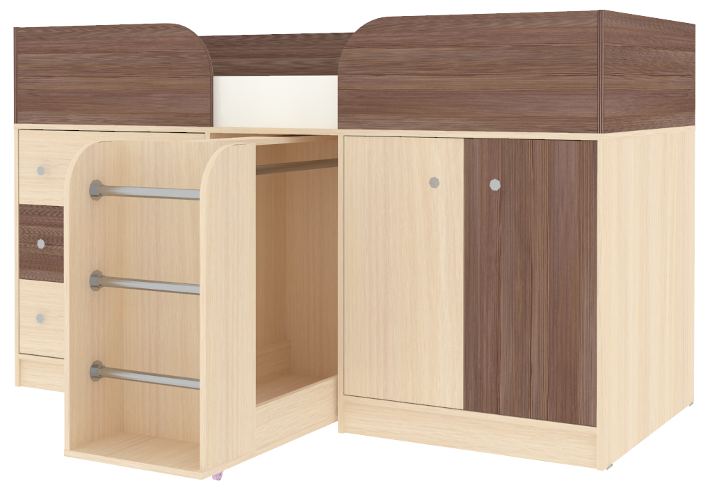Кровать чердак Малыш от мебельной фабрики производится в различных цветах. На цветных фасадах: цвет кромки - бежевый. Мы также можем укомплектовать комплекс матрасом, что, безусловно, сэкономит ваше время на его поиск и заказ ввиду его нестандартности. Эта компактная и многофункциональная детская кровать станет великолепным решением для небольшой детской комнаты. Фабрика проявляет заботу о здоровье детей, и поэтому использует в производстве только экологически чистые материалы. Экологичная мебель не вызывает аллергии и не вредит здоровью. Кроме того, мебель от этого производителя спроектирована с учетом, что ею будут пользоваться дети, поэтому при ее создании были приняты все меры для уменьшения ее травмоопасности. У мебели для малышей нет острых углов, о которые ребенок может больно удариться. Кровати-чердаки обязательно оборудованы ограничителями, которые не дадут ребенку случайно упасть с кровати. разумеется, особое внимание компания уделяет прочности и надежности производимой мебели. Являясь малогабаритной, компактной и многофункциональной кроваткой Малыш 4 станет великолепным решением для небольшой детской комнаты. Матрас для кровати вы можете приобрести отдельно в разделе детских матрасов. Так же мы предлагаем ниже в разделе Аксессуары наиболее оптимальные варианты для данной кровати.