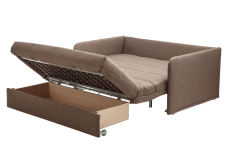 Диван-кровать Аккордеон раскладывается вперед, что позволяет получить большое и ровное спальное место при сравнительно скромных габаритах в сложенном виде. Основа дивана — прочный и надежный металлический каркас.