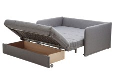 Диван-кровать Аккордеон раскладывается вперед, что позволяет получить большое и ровное спальное место при сравнительно скромных габаритах в сложенном виде. Основа дивана — прочный и надежный металлический каркас.