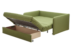 Диван-кровать Аккордеон раскладывается вперед, что позволяет получить большое и ровное спальное место при сравнительно скромных габаритах в сложенном виде. Основа дивана — прочный и надежный металлический каркас.