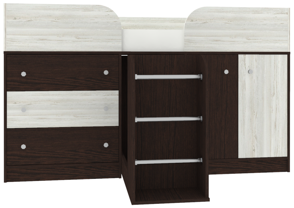 Кровать чердак Малыш от мебельной фабрики производится в различных цветах. На цветных фасадах: цвет кромки - бежевый. Мы также можем укомплектовать комплекс матрасом, что, безусловно, сэкономит ваше время на его поиск и заказ ввиду его нестандартности. Эта компактная и многофункциональная детская кровать станет великолепным решением для небольшой детской комнаты. Фабрика проявляет заботу о здоровье детей, и поэтому использует в производстве только экологически чистые материалы. Экологичная мебель не вызывает аллергии и не вредит здоровью. Кроме того, мебель от этого производителя спроектирована с учетом, что ею будут пользоваться дети, поэтому при ее создании были приняты все меры для уменьшения ее травмоопасности. У мебели для малышей нет острых углов, о которые ребенок может больно удариться. Кровати-чердаки обязательно оборудованы ограничителями, которые не дадут ребенку случайно упасть с кровати. разумеется, особое внимание компания уделяет прочности и надежности производимой мебели. Являясь малогабаритной, компактной и многофункциональной кроваткой Малыш 4 станет великолепным решением для небольшой детской комнаты. Матрас для кровати вы можете приобрести отдельно в разделе детских матрасов. Так же мы предлагаем ниже в разделе Аксессуары наиболее оптимальные варианты для данной кровати.
