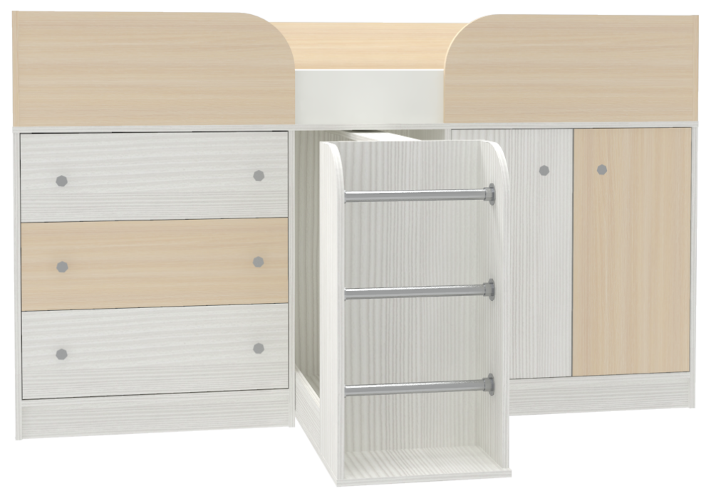 Малогабаритная и многофункциональная детская мебель с удобной кроватью, для Вашего ребенка. Покупая ребенку кровать чердак Малыш 4 Вы сделаете детскую самым необычным местом в доме, добавьте в нее насыщенных красок и приведите малыша в абсолютный восторг. Кровать чердак Малыш 4 решает проблему малого пространства сочетая в себе целый ряд функций: кровать, большой шкафчик для вещей или игрушек, комод с 3-я глубокими ящиками, а так же выдвижную лестницу-гардероб. Мебель изготовлена из ламинированного ДСП, с использованием кромки АБС, что позволяет продлить срок службы изделию и сохранить внешний вид.