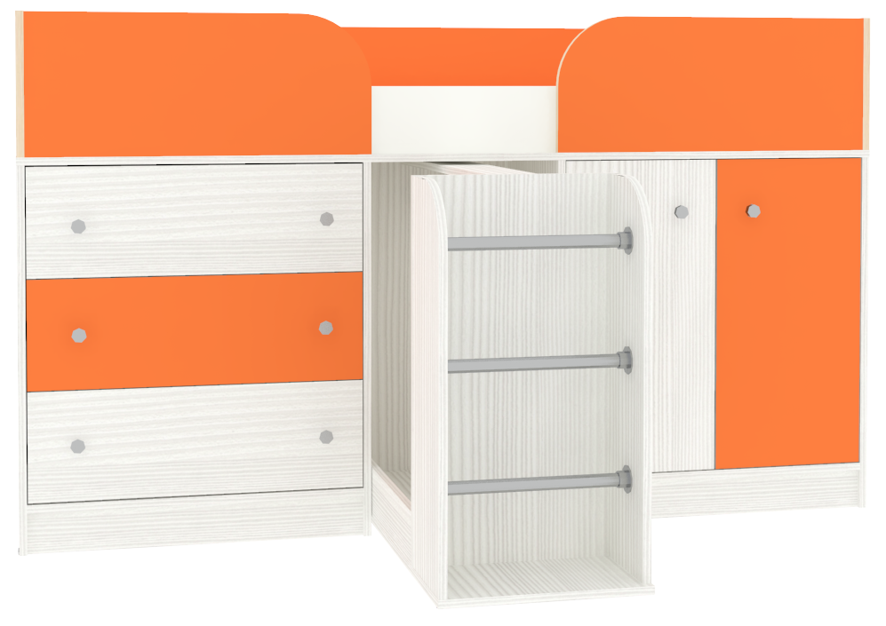 Кровать чердак Малыш 4, Белое Дерево (Оранжевый)