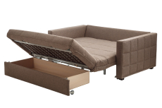 Диван-кровать Аккордеон раскладывается вперед, что позволяет получить большое и ровное спальное место при сравнительно скромных габаритах в сложенном виде. Основа дивана — прочный и надежный металлический каркас.