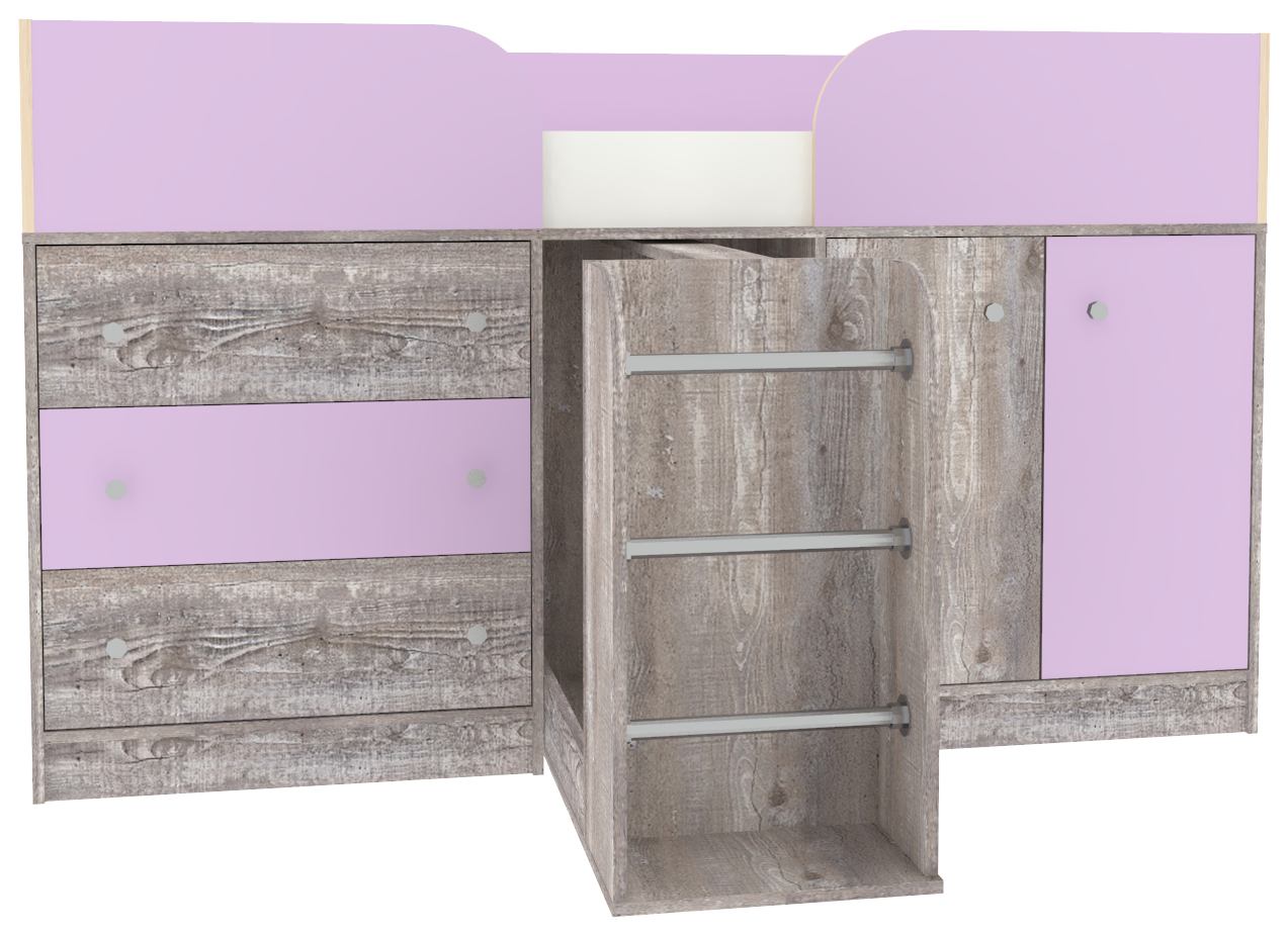 Кровать чердак Малыш от мебельной фабрики производится в различных цветах. На цветных фасадах: цвет кромки - бежевый. Мы также можем укомплектовать комплекс матрасом, что, безусловно, сэкономит ваше время на его поиск и заказ ввиду его нестандартности. Эта компактная и многофункциональная детская кровать станет великолепным решением для небольшой детской комнаты. Фабрика проявляет заботу о здоровье детей, и поэтому использует в производстве только экологически чистые материалы. Экологичная мебель не вызывает аллергии и не вредит здоровью. Кроме того, мебель от этого производителя спроектирована с учетом, что ею будут пользоваться дети, поэтому при ее создании были приняты все меры для уменьшения ее травмоопасности. У мебели для малышей нет острых углов, о которые ребенок может больно удариться. Кровати-чердаки обязательно оборудованы ограничителями, которые не дадут ребенку случайно упасть с кровати. разумеется, особое внимание компания уделяет прочности и надежности производимой мебели. Являясь малогабаритной, компактной и многофункциональной кроваткой Малыш 4 станет великолепным решением для небольшой детской комнаты. Матрас для кровати вы можете приобрести отдельно в разделе детских матрасов. Так же мы предлагаем ниже в разделе Аксессуары наиболее оптимальные варианты для данной кровати.