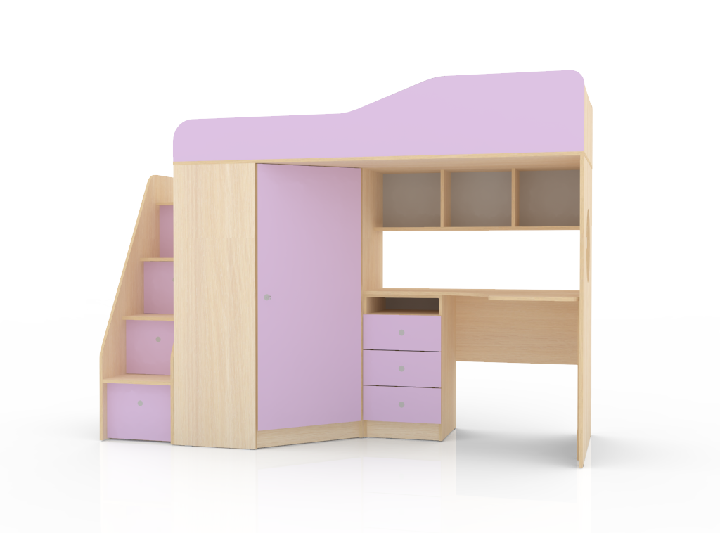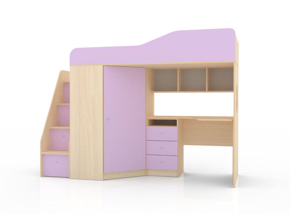 Кровать чердак Кадет 1 оснащен одним спальным местом, лестницей со ступенями в виде ящиков для хранения игрушек, письменным столом с тремя выдвижными ящиками под столешницей, полкой над столешницей и угловым шкафом для одежды. Данная модель подойдет как для детей младших классов, так и для детей более старшего возраста. Такая модель кровати поразит вас своей компактностью, вместительностью и практичностью.