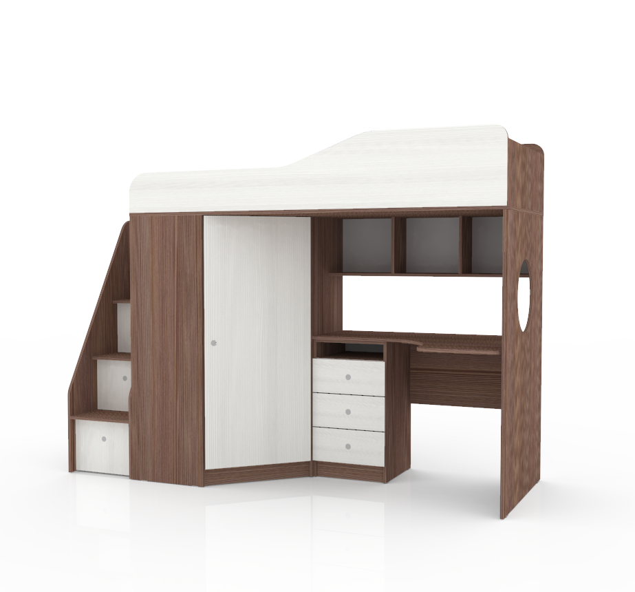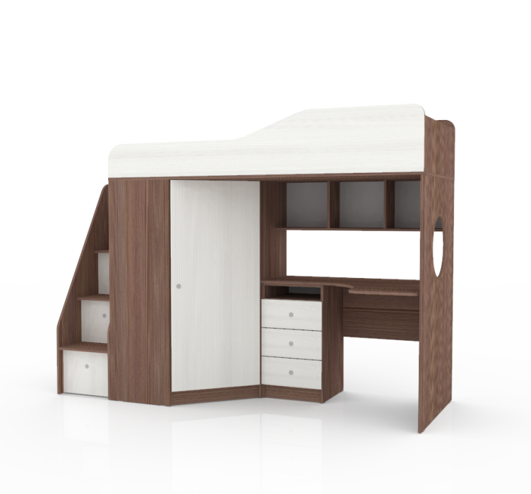 Материалы, используемые при изготовлении: Ламинированная ДСП, края лестницы, борта кровати декорированы противоударной кромкой ПВХ.