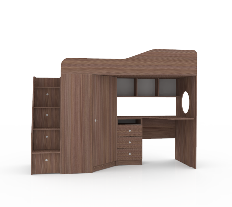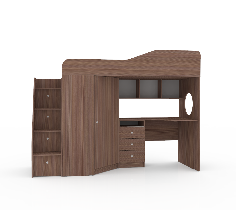 Кровать чердак Кадет 1 оснащен одним спальным местом, лестницей со ступенями в виде ящиков для хранения игрушек, письменным столом с тремя выдвижными ящиками под столешницей, полкой над столешницей и угловым шкафом для одежды. Данная модель подойдет как для детей младших классов, так и для детей более старшего возраста. Такая модель кровати поразит вас своей компактностью, вместительностью и практичностью.