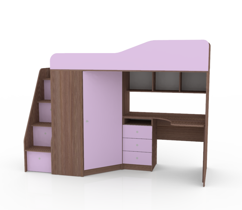 Материалы, используемые при изготовлении: Ламинированная ДСП, края лестницы, борта кровати декорированы противоударной кромкой ПВХ.