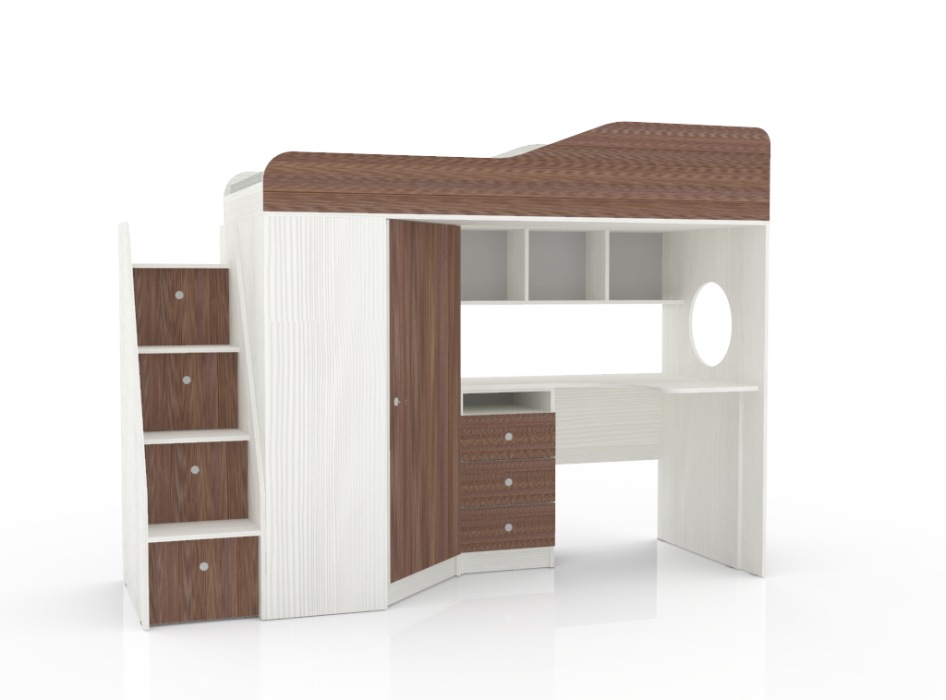 Материалы, используемые при изготовлении: Ламинированная ДСП, края лестницы, борта кровати декорированы противоударной кромкой ПВХ.