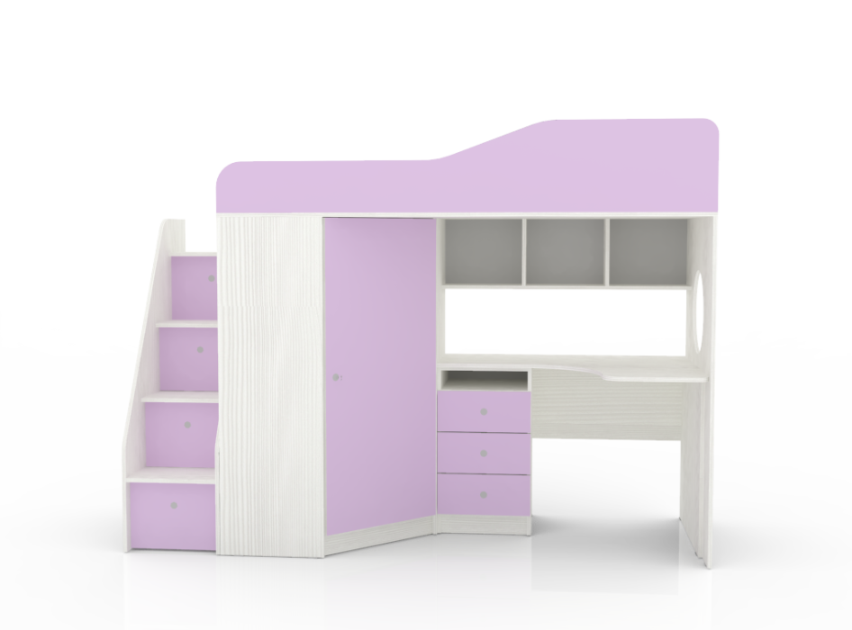 Кровать чердак Кадет 1 оснащен одним спальным местом, лестницей со ступенями в виде ящиков для хранения игрушек, письменным столом с тремя выдвижными ящиками под столешницей, полкой над столешницей и угловым шкафом для одежды. Данная модель подойдет как для детей младших классов, так и для детей более старшего возраста. Такая модель кровати поразит вас своей компактностью, вместительностью и практичностью.