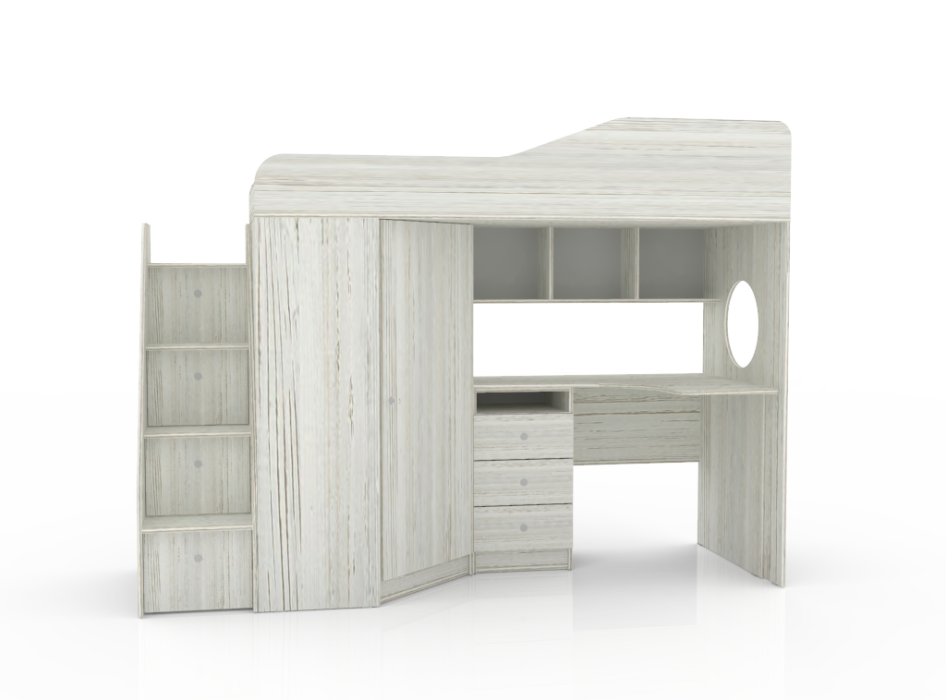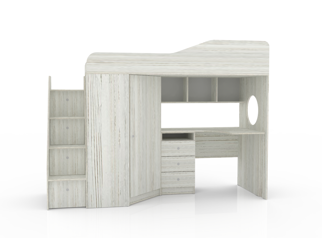 Кровать чердак Кадет 1 оснащен одним спальным местом, лестницей со ступенями в виде ящиков для хранения игрушек, письменным столом с тремя выдвижными ящиками под столешницей, полкой над столешницей и угловым шкафом для одежды. Данная модель подойдет как для детей младших классов, так и для детей более старшего возраста. Такая модель кровати поразит вас своей компактностью, вместительностью и практичностью.