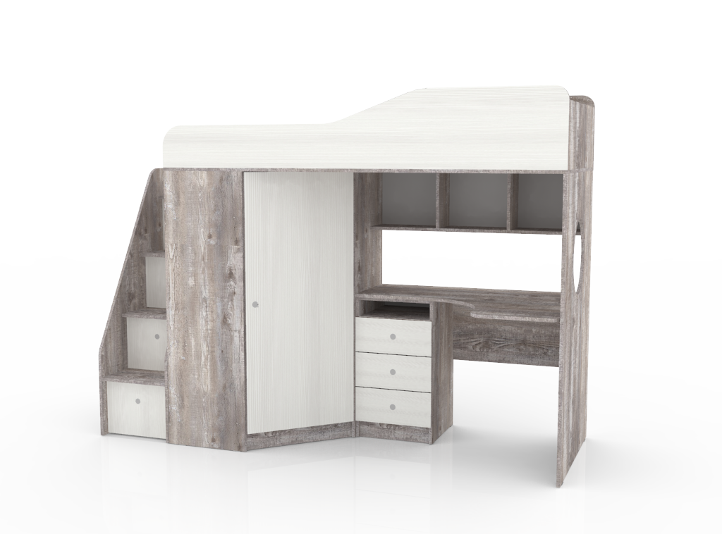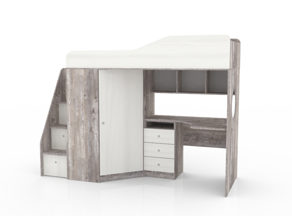 Кровать чердак Кадет 1 с универсальной лестницей, Бетон (Белое дерево)