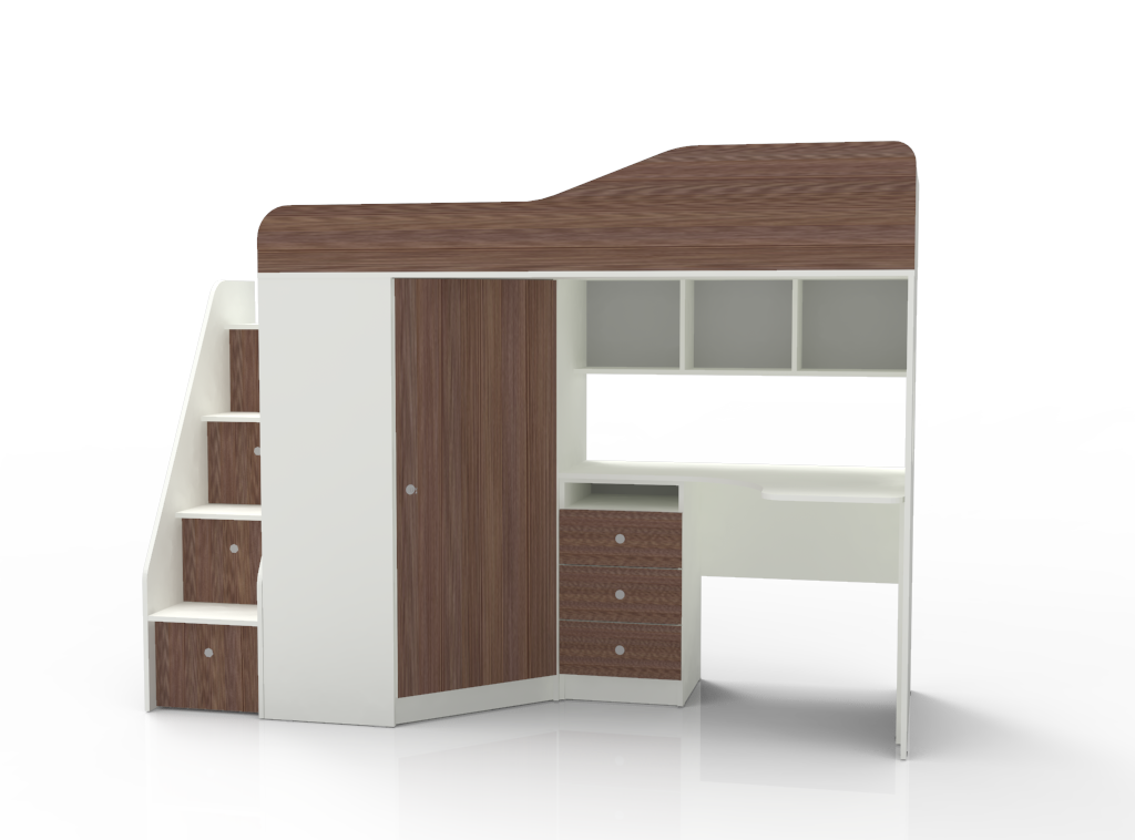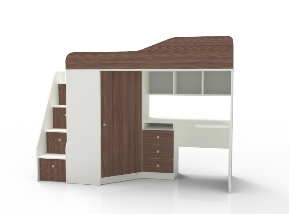 - Стеллаж для книг под спальным местом Основные параметры: - Кроватный модуль, размеры (Д*Г*В): 2332*832*1716 мм. - Спальное место: 800*1900 мм. - Угловой шкаф, размеры (Д*Г*В): 832*832*1350 мм. - Стол, размеры (Д*Г*В): 1100*740*735 мм. - Высота борта: 350 мм. - Рекомендованная высота матраса: 50-150 мм.