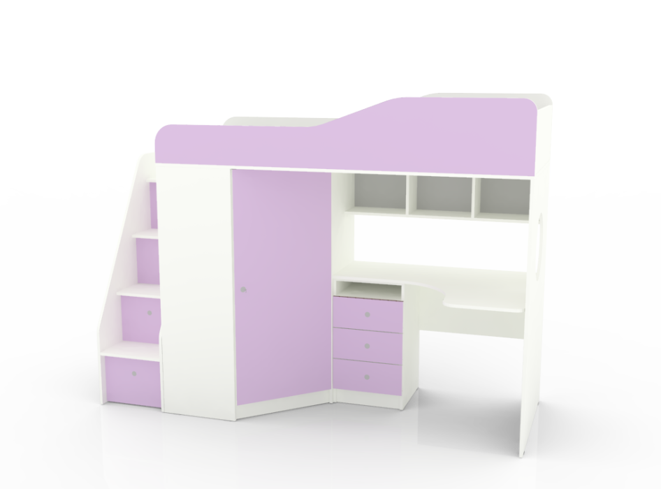 Материалы, используемые при изготовлении: Ламинированная ДСП, края лестницы, борта кровати декорированы противоударной кромкой ПВХ.