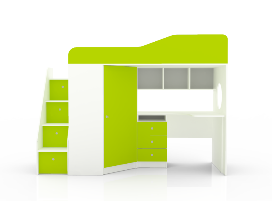Материалы, используемые при изготовлении: Ламинированная ДСП, края лестницы, борта кровати декорированы противоударной кромкой ПВХ.