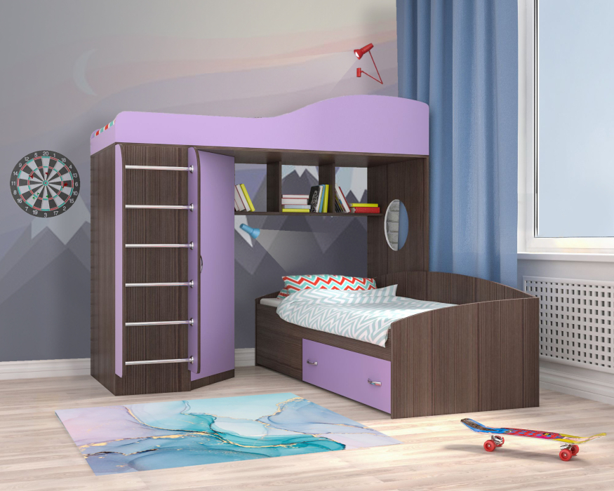 Материалы, используемые при изготовлении: Ламинированная ДСП, края лестницы, борта кровати декорированы противоударной кромкой ПВХ.