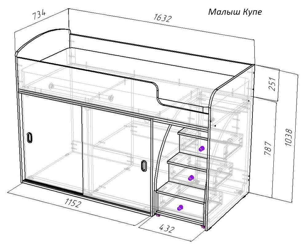 Благодаря огромному выбору цветового решения, вы подберете именно ту модель, которая понравится вашему ребенку. Такая кровать поразит вас своей компактностью, вместительностью и практичностью. На цветных фасадах: цвет кромки - Бежевый. Детская кровать - чердак Малыш предназначена для ребёнка от 2 до 8 лет. Мебельная фабрика производит кровать чердак Малыш в различных цветах: такую кровать можно купить и для мальчиков, и для девочек. Дно кровати - щит ЛДСП. Матрас можно заказать отдельно. Размер спального места (матраса) 70х160 см. Кровать чердак Малыш Купе универсальна и может быть собрана в лево- и правостороннем вариантах.. Фабрика проявляет заботу о здоровье детей, и поэтому использует в производстве только экологически чистые материалы. Экологичная мебель не вызывает аллергии и не вредит здоровью. Кроме того, мебель от этого производителя спроектирована с учетом, что ей будут пользоваться дети, поэтому при ее создании были приняты все меры для уменьшения ее травмоопасности. У мебели для малышей нет острых углов, о которые ребенок может больно удариться. Кровати-чердаки обязательно оборудованы ограничителями, которые не дадут ребенку случайно упасть с кровати. разумеется, особое внимание компания уделяет прочности и надежности производимой мебели.Эта компактная и многофункциональная детская кровать станет великолепным решением для небольшой детской комнаты. Матрас для кровати вы можете приобрести отдельно в разделе детских матрасов. Так же мы предлагаем ниже в разделе Аксессуары наиболее оптимальные варианты для данной кровати.