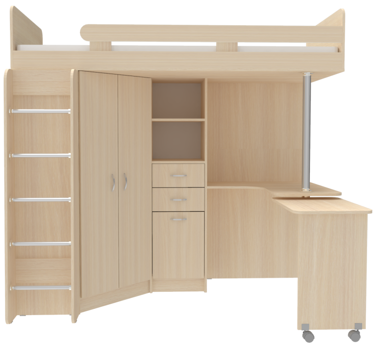 Кровать чердак Юниор 3 - уникальная модель, которая непременно понравится своей комфортностью, оригинальностью и многофункциональностью всем членам семьи. Несмотря на обилие функциональных предметов, этот комплекс выглядит аккуратно. Стильная и функциональная двухъярусная кровать для ваших детей, выполненная из качественных и натуральных материалов. Такая детская мебель является максимально удобной, соединяя в оригинальный комплект большое спальное место, удобное место для уроков и большой шкаф для одежды. Подойдет такой комплект для мальчика и девочки, ведь разнообразие расцветок может быть составлено в соответствии с вкусовыми предпочтениями ребенка и выбранной тематикой. Цветовое исполнение корпус: Венге, Дуб молочный, Белое дерево, Бодего темный, Белый, Винтерберг, Бетон Цветовое исполнение фасады: Дуб молочный, Белое дерево, Белый, Бодего темный, Венге, Винтерберг, Бетон, Лайм, Светло Синий/Голубой, Розовый, Оранжевый, Ириc. Цвет кромки на цветных фасадах - бежевый Кровать-чердак Юниор 3 станет чудесным подарком для Вашего ребёнка. Матрас для кровати вы можете приобрести отдельно в разделе детских матрасов. Так же мы предлагаем ниже в разделе Аксессуары наиболее оптимальные варианты для данной кровати.