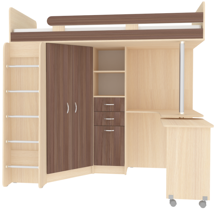 Кровать чердак Юниор 3 - уникальная модель, которая непременно понравится своей комфортностью, оригинальностью и многофункциональностью всем членам семьи. Несмотря на обилие функциональных предметов, этот комплекс выглядит аккуратно. Стильная и функциональная двухъярусная кровать для ваших детей, выполненная из качественных и натуральных материалов. Такая детская мебель является максимально удобной, соединяя в оригинальный комплект большое спальное место, удобное место для уроков и большой шкаф для одежды. Подойдет такой комплект для мальчика и девочки, ведь разнообразие расцветок может быть составлено в соответствии с вкусовыми предпочтениями ребенка и выбранной тематикой. Цветовое исполнение корпус: Венге, Дуб молочный, Белое дерево, Бодего темный, Белый, Винтерберг, Бетон Цветовое исполнение фасады: Дуб молочный, Белое дерево, Белый, Бодего темный, Венге, Винтерберг, Бетон, Лайм, Светло Синий/Голубой, Розовый, Оранжевый, Ириc. Цвет кромки на цветных фасадах - бежевый Кровать-чердак Юниор 3 станет чудесным подарком для Вашего ребёнка. Матрас для кровати вы можете приобрести отдельно в разделе детских матрасов. Так же мы предлагаем ниже в разделе Аксессуары наиболее оптимальные варианты для данной кровати.