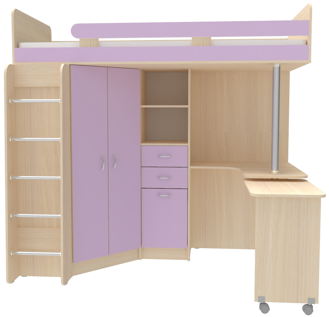 Кровать чердак Юниор 3 - уникальная модель, которая непременно понравится своей комфортностью, оригинальностью и многофункциональностью всем членам семьи. Несмотря на обилие функциональных предметов, этот комплекс выглядит аккуратно. Стильная и функциональная двухъярусная кровать для ваших детей, выполненная из качественных и натуральных материалов. Такая детская мебель является максимально удобной, соединяя в оригинальный комплект большое спальное место, удобное место для уроков и большой шкаф для одежды. Подойдет такой комплект для мальчика и девочки, ведь разнообразие расцветок может быть составлено в соответствии с вкусовыми предпочтениями ребенка и выбранной тематикой. Цветовое исполнение корпус: Венге, Дуб молочный, Белое дерево, Бодего темный, Белый, Винтерберг, Бетон Цветовое исполнение фасады: Дуб молочный, Белое дерево, Белый, Бодего темный, Венге, Винтерберг, Бетон, Лайм, Светло Синий/Голубой, Розовый, Оранжевый, Ириc. Цвет кромки на цветных фасадах - бежевый Кровать-чердак Юниор 3 станет чудесным подарком для Вашего ребёнка. Матрас для кровати вы можете приобрести отдельно в разделе детских матрасов. Так же мы предлагаем ниже в разделе Аксессуары наиболее оптимальные варианты для данной кровати.