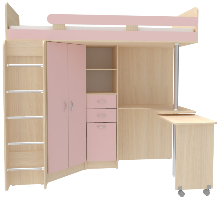 Отзывы о Столплит Кровать чердак Юниор 3 с металлической лестницей, Дуб Молочный Розовый