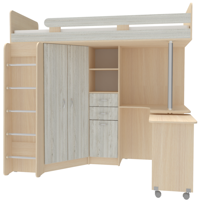 Кровать чердак Юниор 3 - уникальная модель, которая непременно понравится своей комфортностью, оригинальностью и многофункциональностью всем членам семьи. Несмотря на обилие функциональных предметов, этот комплекс выглядит аккуратно. Стильная и функциональная двухъярусная кровать для ваших детей, выполненная из качественных и натуральных материалов. Такая детская мебель является максимально удобной, соединяя в оригинальный комплект большое спальное место, удобное место для уроков и большой шкаф для одежды. Подойдет такой комплект для мальчика и девочки, ведь разнообразие расцветок может быть составлено в соответствии с вкусовыми предпочтениями ребенка и выбранной тематикой. Цветовое исполнение корпус: Венге, Дуб молочный, Белое дерево, Бодего темный, Белый, Винтерберг, Бетон Цветовое исполнение фасады: Дуб молочный, Белое дерево, Белый, Бодего темный, Венге, Винтерберг, Бетон, Лайм, Светло Синий/Голубой, Розовый, Оранжевый, Ириc. Цвет кромки на цветных фасадах - бежевый Кровать-чердак Юниор 3 станет чудесным подарком для Вашего ребёнка. Матрас для кровати вы можете приобрести отдельно в разделе детских матрасов. Так же мы предлагаем ниже в разделе Аксессуары наиболее оптимальные варианты для данной кровати.