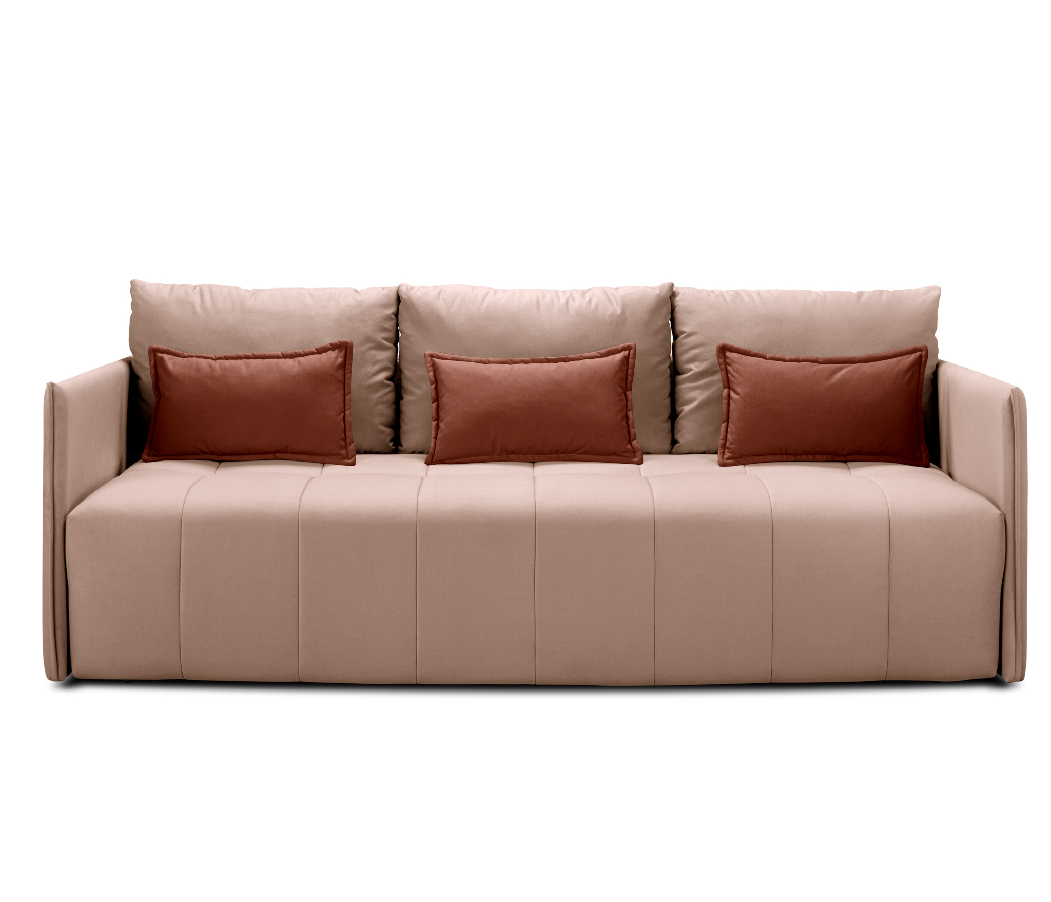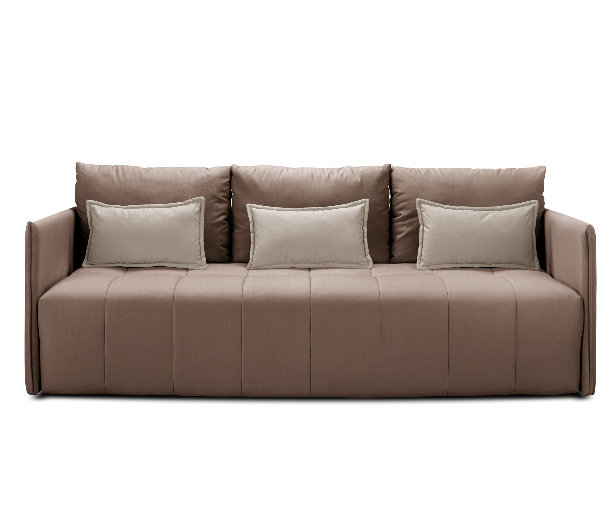 Диван выполнен в классическом дизайне с элегантными узкими боковина и декоративной прострочкой.