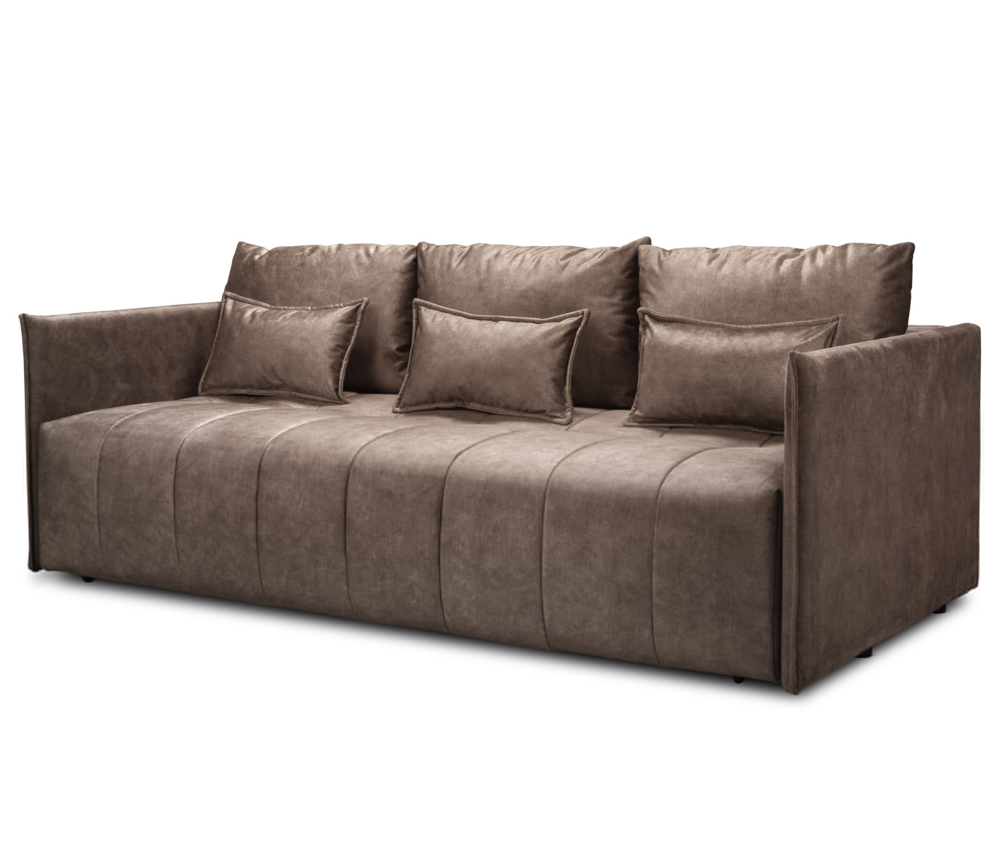 Диван выполнен в классическом дизайне с элегантными узкими боковина и декоративной прострочкой.