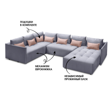 Диван-еврокнижка Чилетти П-образный легко разбирается для сна.