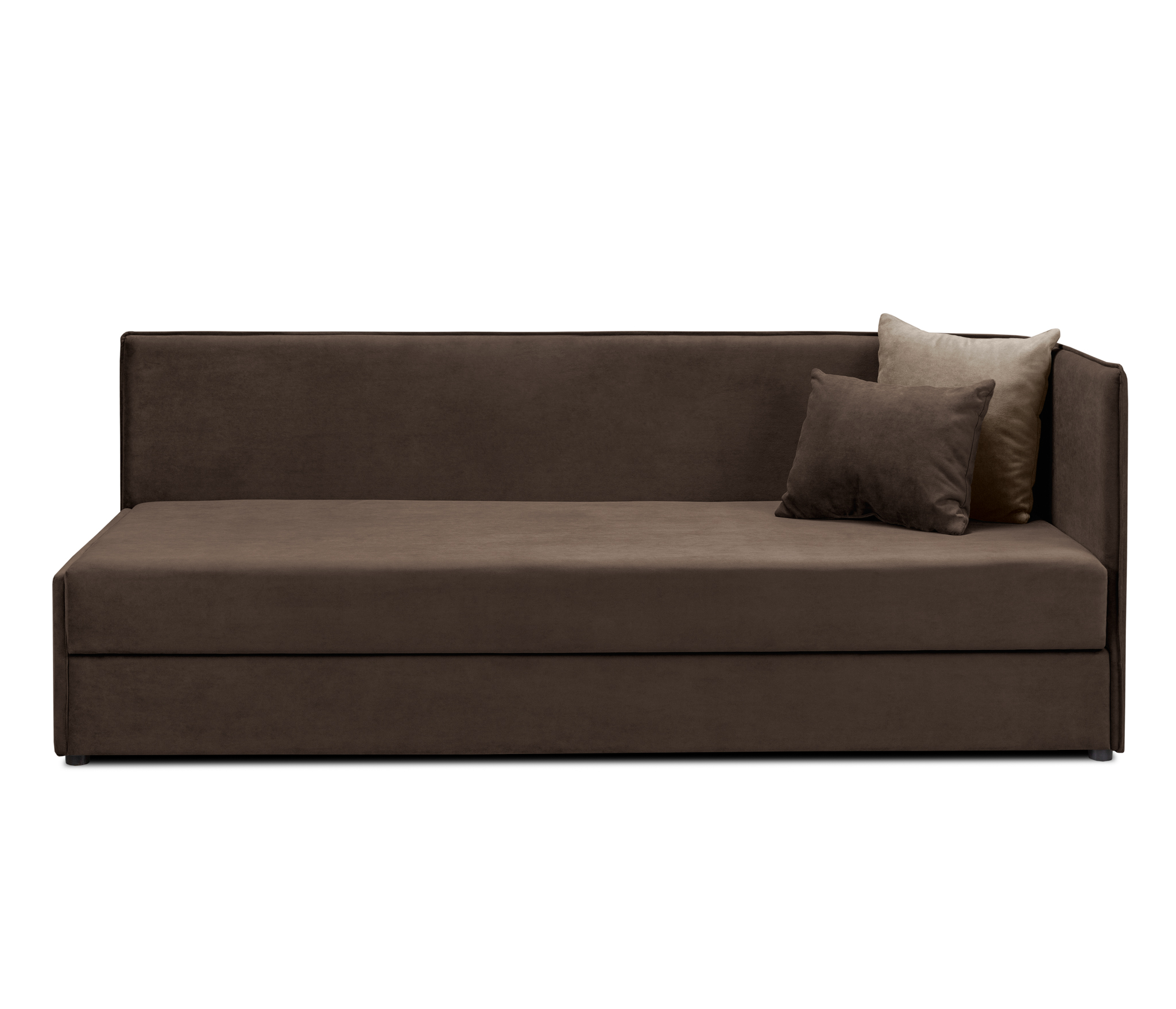 - При заказе вы можете выбрать несколько вариантов исполнения: изголовье справа или изголовье слева. Габариты тахты: 2090*845*800 мм