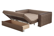 Диван-кровать Аккордеон раскладывается вперед, что позволяет получить большое и ровное спальное место при сравнительно скромных габаритах в сложенном виде. Основа дивана — прочный и надежный металлический каркас.