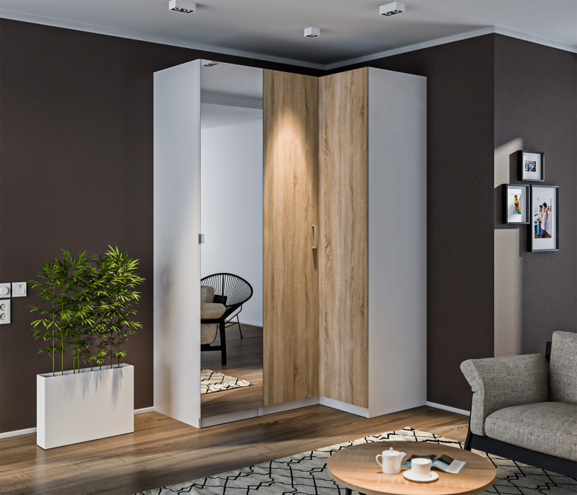 Отзывы о Столплит МАКС Шкаф угловой с зеркалом Белый/Дуб Сонома
