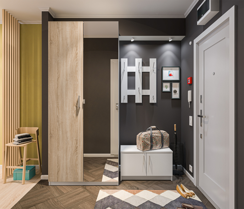 Отзывы о Столплит МАКС Шкаф 2-х дверный с зеркалом Белый/Дуб Сонома + Терра прихожая Белый