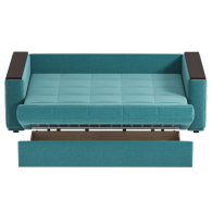 Диван-кровать Аккордеон раскладывается вперед, что позволяет получить большое и ровное спальное место при сравнительно скромных габаритах в сложенном виде. Основа дивана — прочный и надежный металлический каркас.