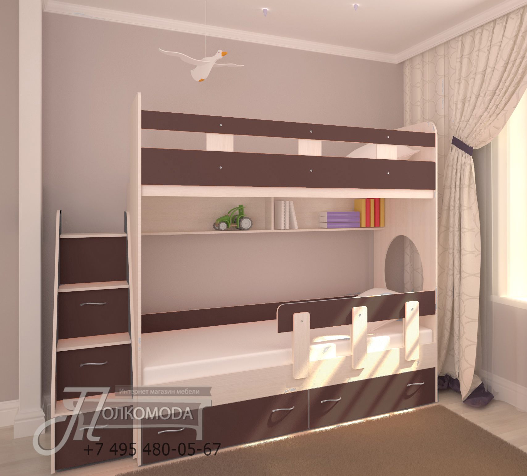 Отзывы о Столплит Трехъярусная кровать Юниор, Дуб Молочный Бодега темная