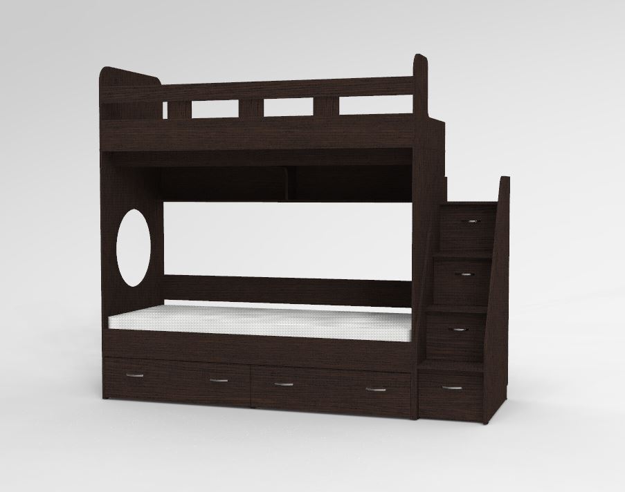 Трехъярусная кровать чердак Юниор решает проблему малого пространства сочетая в себе целый ряд функций: спальные места для троих, навесная полка для книг и игрушек, вместительный выдвижной ящик под кроватью может использоваться для хранения или как дополнительное спальное место, а так же приставная лестница расположенная сбоку, обеспечивающая быстрый и безопасный доступ на второй этаж, с безопасными ступенями в виде выдвижных ящиков. Дополнительный бортик для нижнего яруса покупается отдельно!!! Ступеньки лестницы представляют собой небольшие ящички, в которые можно сложить нижнее белье ребенка, игрушки и иные вещи. Уникальность Юниор заключается в: Цене Компактности Безопасности Надёжности Функциональности. Мебель изготовлена из ламинированного ДСП, с использованием кромки АБС, что позволяет продлить срок службы изделия и сохранить внешний вид. Отсутствие острых углов является самым главным критерием травмобезопастности детей. Кровать выполнена из надежной 16мм ламинированной ДСП. Все торцы мебели обрамлены кромкой ABS 1мм. Сборка универсальная, лестница может быть справа и слева. Спальное место 1900х800мм. Материал – ЛДСП. Мебель соответствует высоким стандартам качества и безопасности. Вся мебель сертифицирована и выполнена из экологически чистого материала. Двухъярусная кровать ЮНИОР являясь одновременно яркой, функциональной и универсальной мебелью, займет почтенное место в детской. *Предприятие-изготовитель оставляет за собой право вносить изменения в конструкцию изделия с целью улучшения технологических и экспутационных свойств мебели. Матрасы для кровати вы можете приобрести отдельно в разделе детских матрасов. Так же мы предлагаем ниже, в разделе Аксессуары, наиболее оптимальные варианты для данной кровати.