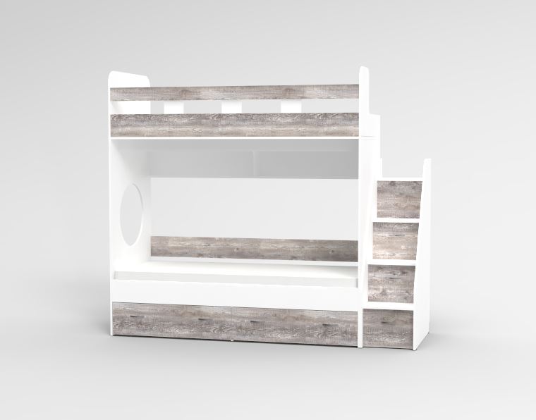 Трехъярусная кровать Юниор, Белый (Бетон серый)