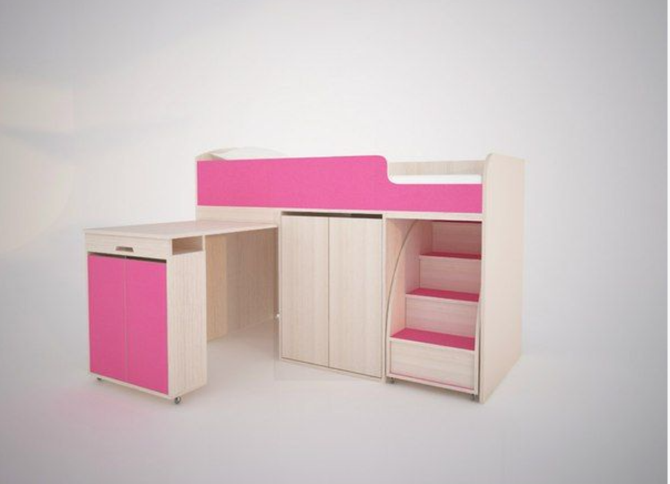 Кровать чердак Малыш Эконом, Дуб Молочный (Розовый)