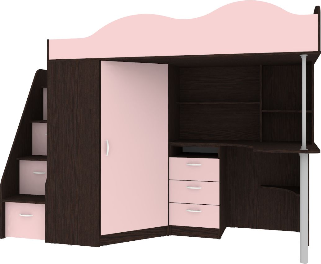 Кровать чердак Пионер, Венге (Розовый)
