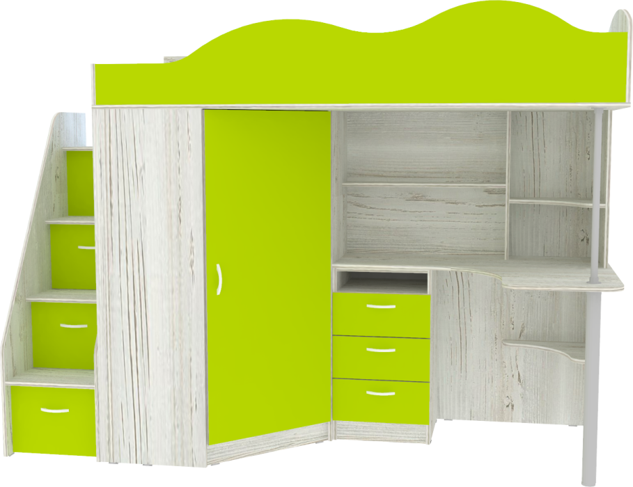 Кровать чердак Пионер включает в себя: Компьютерный стол с множеством стеллажей Тумба с ящиками для письменных принадлежностей Небольшой, но глубокий шкафчик для одежды и обуви, стоящий под углом оснащён перекладиной для вешалок и полочками Просторная лестница представляет собой три системы хранения для всевозможных вещей в виде широких ступенек Бортик среднего размера, сделанный в форме волн, защитит ребёнка от случайных падений Качественные материалы и удачная комбинация цвета фасадов и основной конструкции, обеспечат безопасность, долговечность и сохранят привлекательный внешний вид. Сборка универсальная. Матрасы в стоимость не входят. - Хотите заказать сборку нашими специалистами? Отлично, мы соберем вам кровать одновременно с доставкой! - Хотите собрать кроватку сами? Нет ничего проще, просто вооружитесь инструкцией и посмотрите наше видео! Ваш ребенок по достоинству оценит комфорт, который несет вам кровать-чердак с рабочей зоной Пионер. Кровать чердак Пионер - это удобная и компактная мини детская комната для Вашего ребенка со спальным местом наверху и рабочей зоной внизу. Матрас для кровати вы можете приобрести отдельно в разделе детских матрасов. Так же мы предлагаем ниже в разделе Аксессуары наиболее оптимальные варианты для данной кровати. Предприятие-изготовитель оставляет за собой право вносить изменения в конструкцию изделия с целью улучшения технологических и экспуатационных свойств мебели. Ограничение по нагрузке на лестницу до 60 кг. Цвет кромки на цветных фасадах - бежевый.